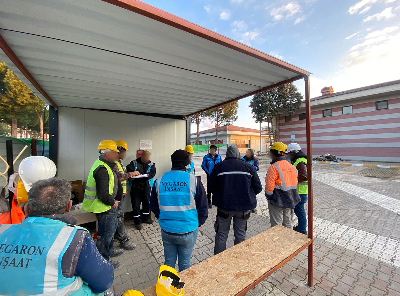 Megaron İnşaat, iş sağlığı ve güvenliği politikaları çerçevesinde çalışanlarının farkındalık ve bilgi düzeyini artırmaya yönelik sistematik eğitim programları yürütmektedir. Bu kapsamda; işe başlama öncesi oryantasyon eğitimleri, düzenli aralıklarla gerçekleştirilen Toolbox toplantıları ve temel İSG hatırlatma eğitimleri uygulanmaktadır. Tüm eğitim faaliyetleri, yasal mevzuat ve uluslararası standartlara uygun olarak planlanmakta ve kayıt altına alınarak sürekli gelişim esasına dayalı şekilde sürdürülmektedir.